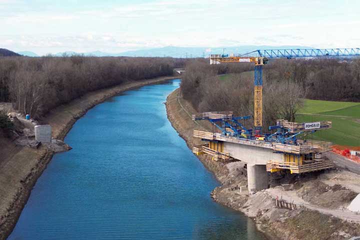 A Giant Crane Places Steel Bridge Structure at Špica in its Final Position