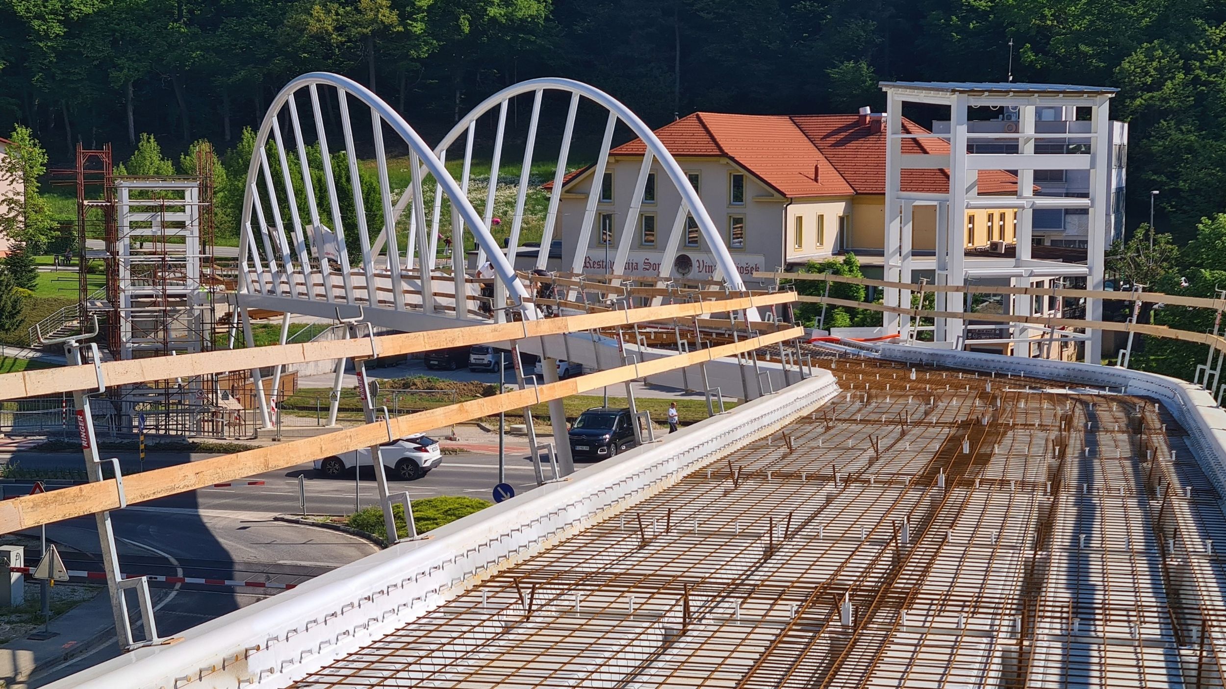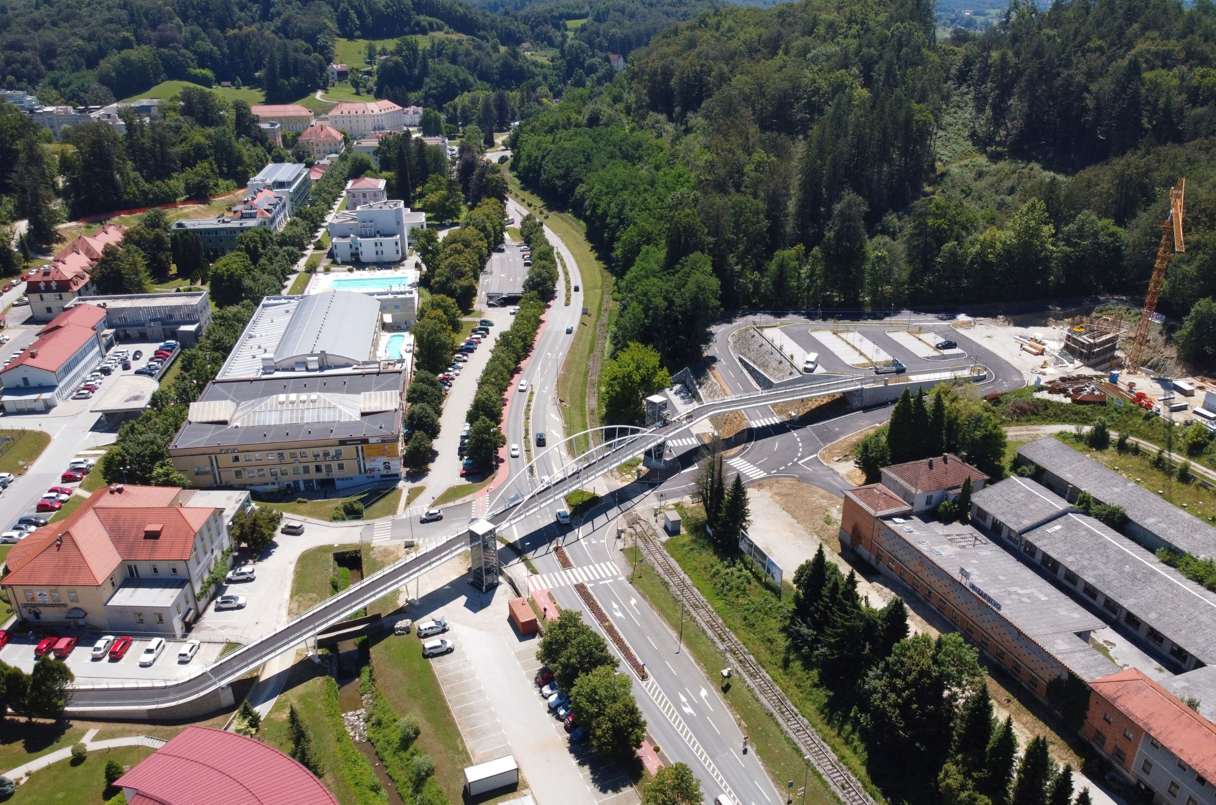 Designed exclusively for pedestrians and cyclists, the overpass Sonce provides a safe connection between the Rogaška Slatina promenade and the foothill of Tržaški hrib. The new overpass is of significant importance for a tourist destination in which the need for outdoor recreational areas and experiences is even greater.