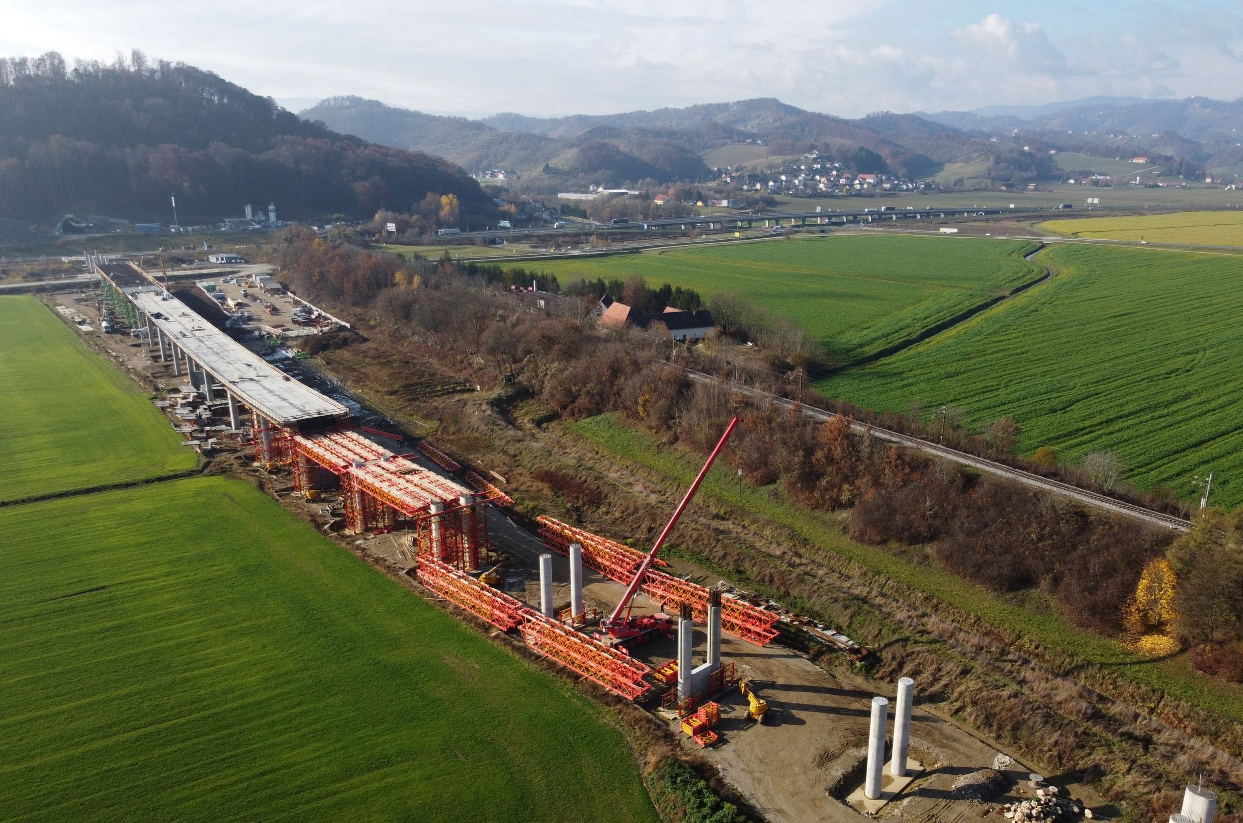 This design concept allows the implementation of a continuous welded rail track (CWR) without expansion joints, with great advantages in terms of traffic safety, economy, sustainability and noise emissions. In terms of architectural design, the structural design is logic, transparent and neutral to the environment in its appearance. Construction work on a new railway viaduct across the Pesnica river valley near Maribor started in October 2020, and opened to traffic in August 2023.