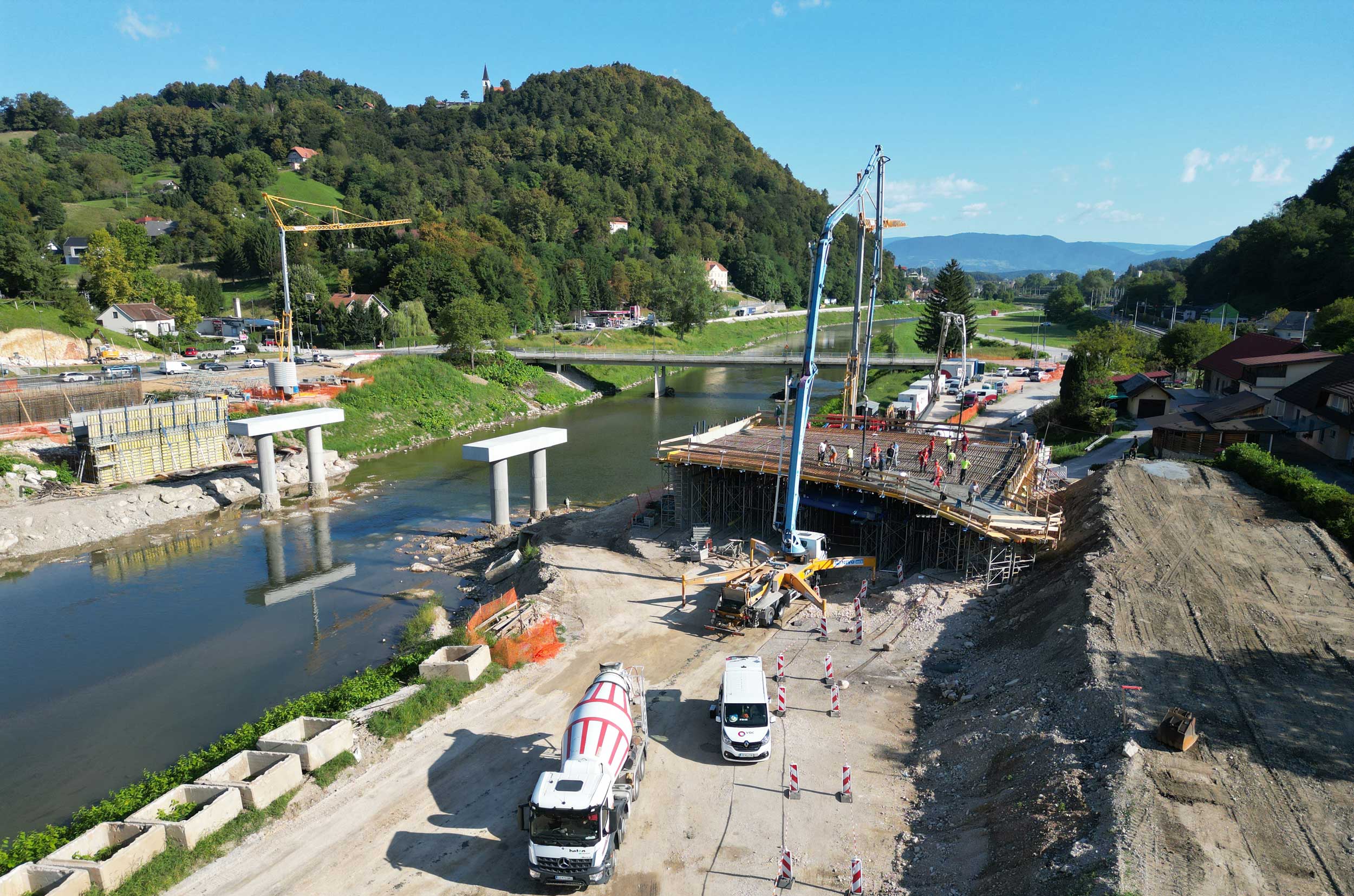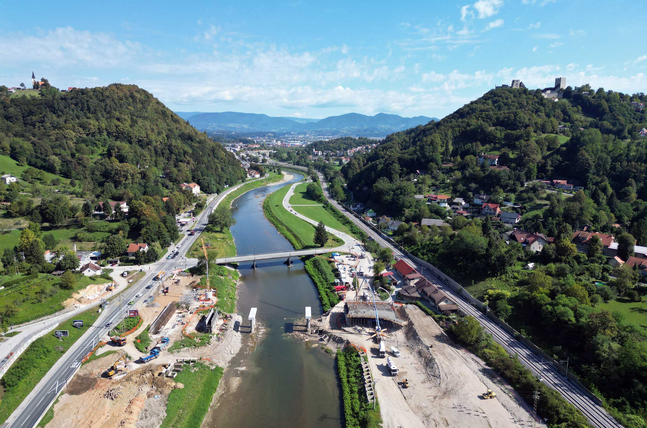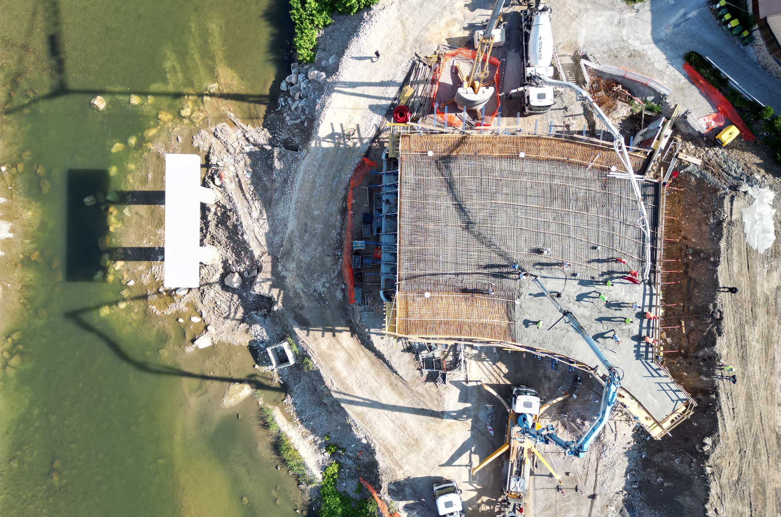 Ta teden je potekala vgradnja betona na plošči levega krajnega inundacijskega razpona novega mosta na Polulah. Sledijo dela na desnem krajnem inundacijskem razponu in v delavnici, v kateri že poteka izdelava jeklene konstrukcije vmesnega razpona. Novi, 110 metrov dolg most predstavlja enega ključnih korakov pri zmanjševanju poplavne ogroženosti v Celju. Most bo zagotovil boljši hidravlični pretok visokih voda reke Savinje, hkrati pa izboljšal prometno infrastrukturo ter povezanost lokalne skupnosti. Rešitev za nov most smo pripravili v inženirskem biroju Ponting.Hkrati se je v okviru protipoplavnih ukrepov na obravnavanem območju Savinje pričela tudi izvedba še dveh konstrukcij, ki sta bili zasnovani v našem biroju, in sicer opornega zidu ter prepusta.