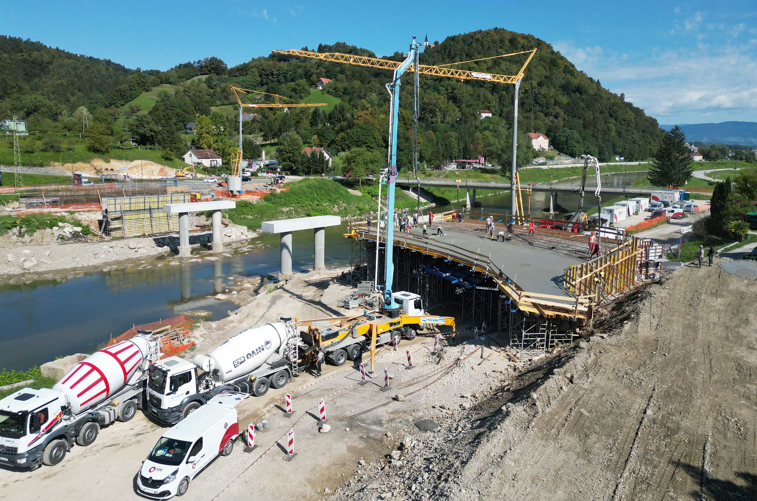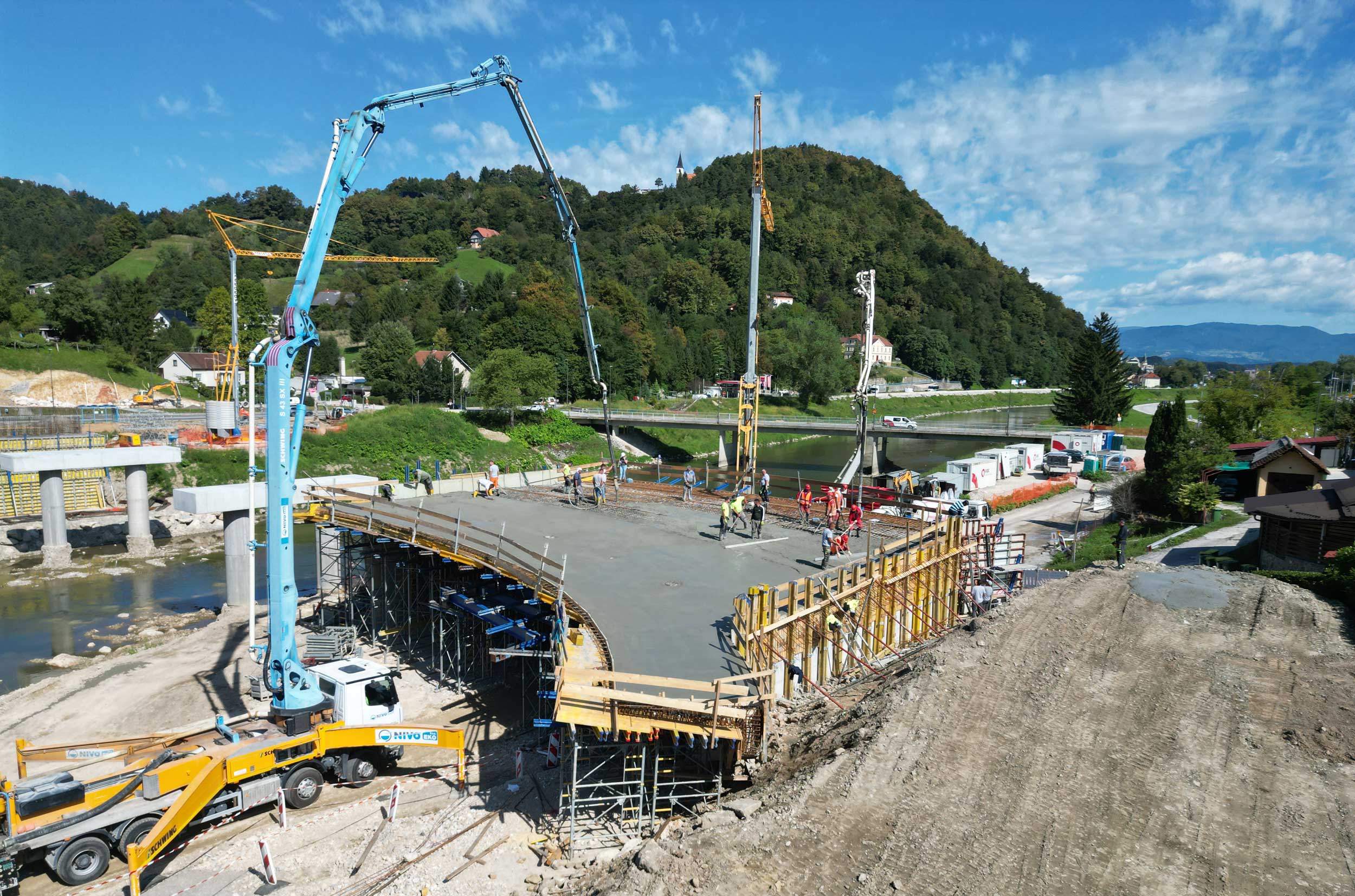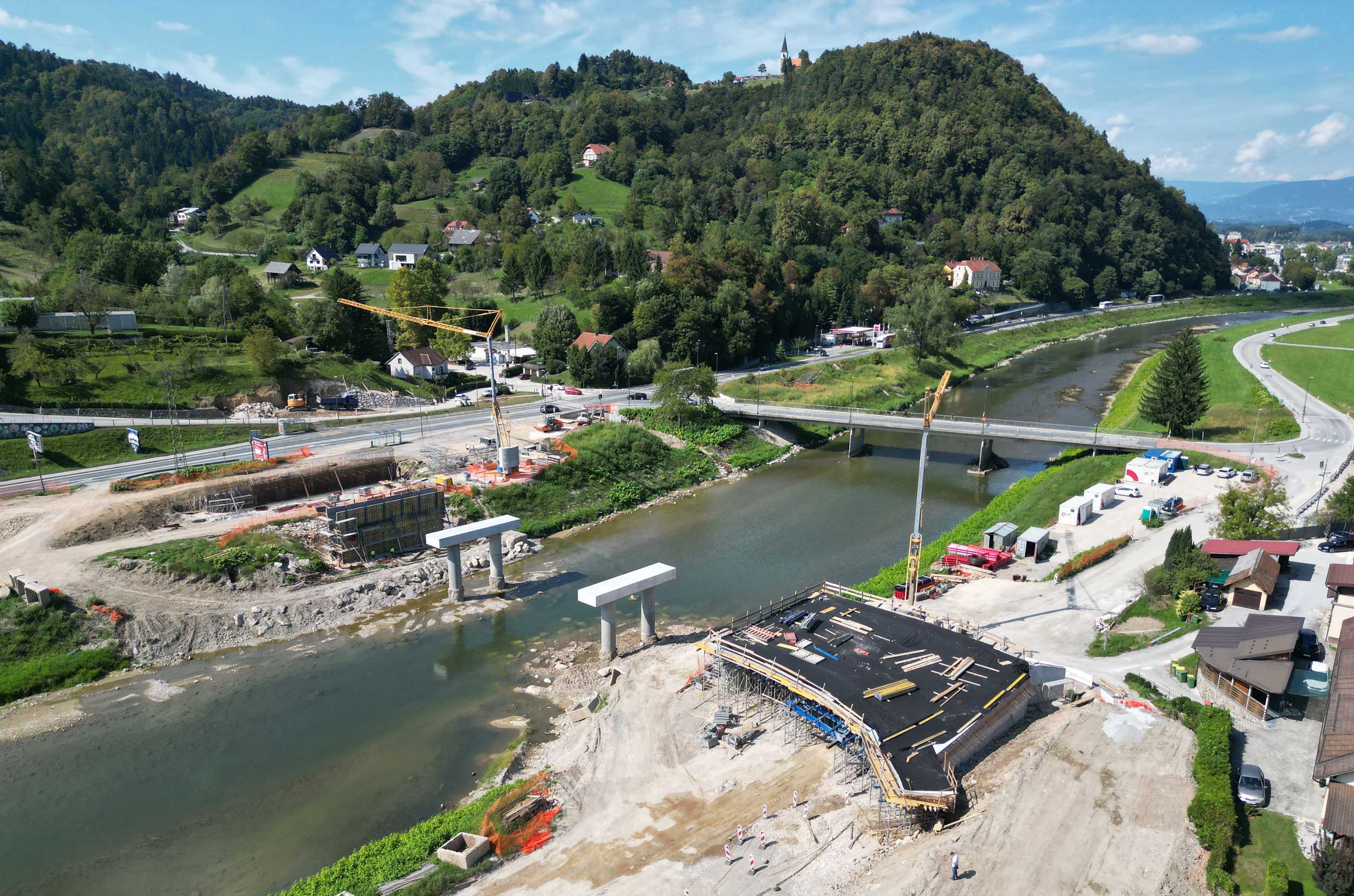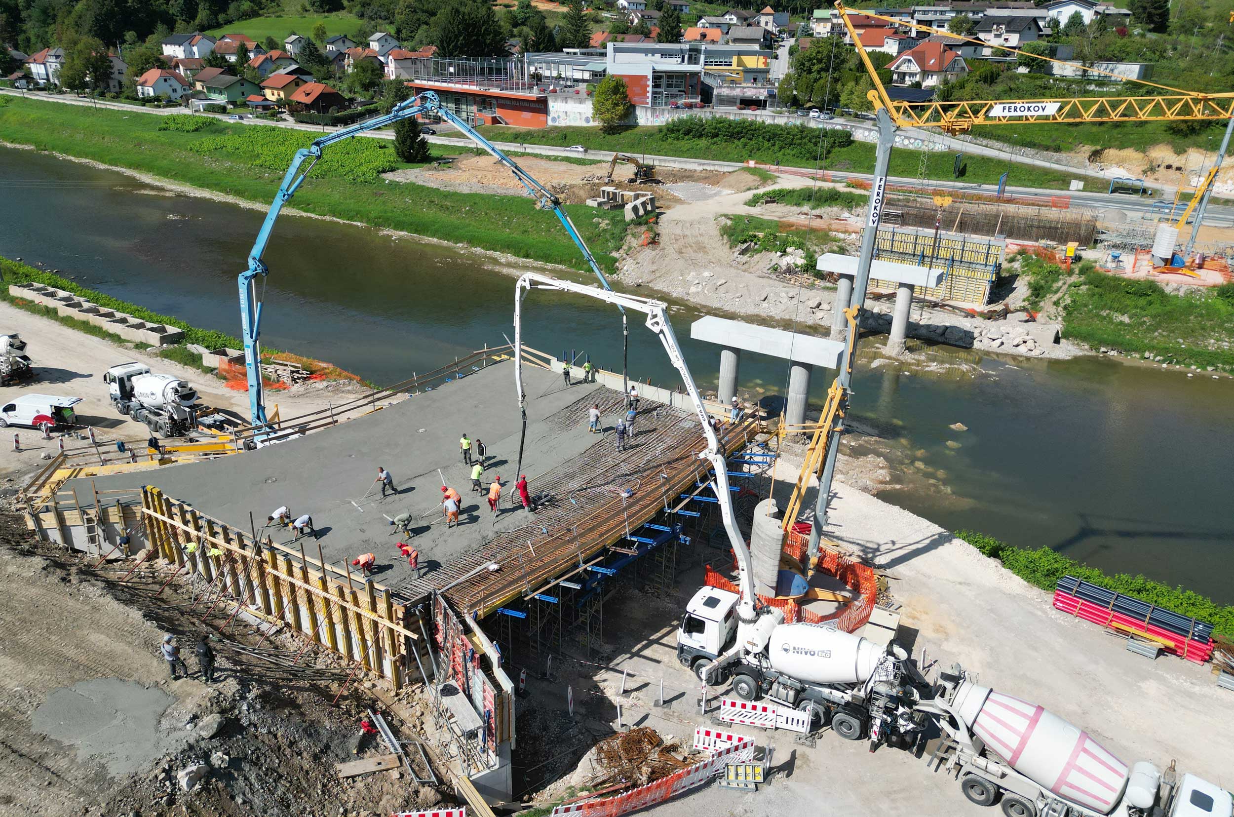 Ta teden je potekala vgradnja betona na plošči levega krajnega inundacijskega razpona novega mosta na Polulah. Sledijo dela na desnem krajnem inundacijskem razponu in v delavnici, v kateri že poteka izdelava jeklene konstrukcije vmesnega razpona. Novi, 110 metrov dolg most predstavlja enega ključnih korakov pri zmanjševanju poplavne ogroženosti v Celju. Most bo zagotovil boljši hidravlični pretok visokih voda reke Savinje, hkrati pa izboljšal prometno infrastrukturo ter povezanost lokalne skupnosti. Rešitev za nov most smo pripravili v inženirskem biroju Ponting.Hkrati se je v okviru protipoplavnih ukrepov na obravnavanem območju Savinje pričela tudi izvedba še dveh konstrukcij, ki sta bili zasnovani v našem biroju, in sicer opornega zidu ter prepusta.